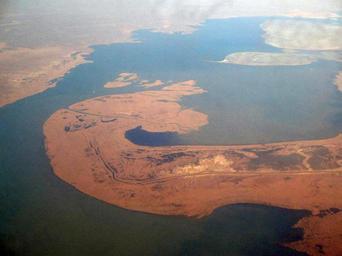 | Keywords: BalkhashPlaneTransaero.JPG en The center of Balkhash Lake as seen from an airplane ru Полуост ов Са ыесик азделяющий озе о Балхаш на две части и п олив Узына ал Ап ель 2006 года снимок сделан с бо та самолёта Алма-Ата - Домодедово авиакомпании Т ансаэ о Own Ds02006 2006-04 46 56 75 36 Geography of Kazakhstan Lake Balkhash |