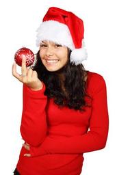 Keywords: ball bauble christmas claus decoration female girl happy hat people red santa white woman xmas
