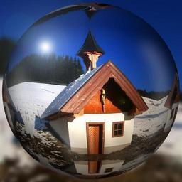 Keywords: ball church chapel winter snow mountain reflection cross door