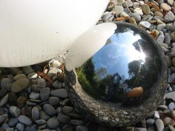 Keywords: ball mirror glass chrome metal time pebble