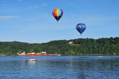 Keywords: balloons hot air rising sky colorful flight event lift lake water floating peaceful freedom up