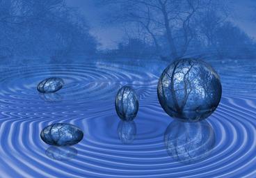 Keywords: balls form water surreal art fotoart blow pattern blue background fantasy wave abstract fractals dream rings graphical into each other connected digital art surface circle mood atmosphere atmospheric tree lake decoration dark night