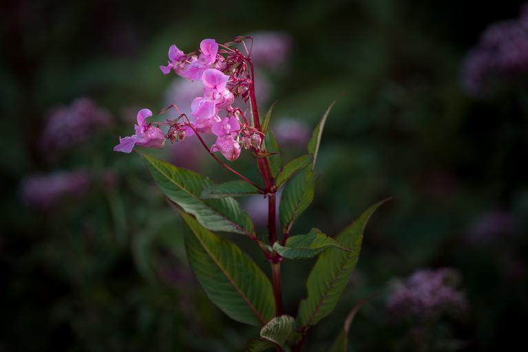 Keywords: balsam balsaminengewaechs himalayan balsam impatiens glandulifera indian springkraut red spring herb impatiens plant flowers pink pink flowers plage nature close twilight