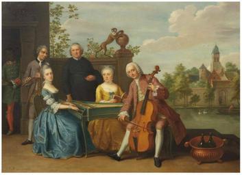 | Keywords: Balthasar Beschey - An elegant company traditionally identified as the wedding of Jacob Johannes Cremers.jpg Artwork Creator Balthasar Beschey en An elegant company traditionally identified as the wedding of Jacob Johannes Cremers + 1786 all seated and making music on a terrace a village and lake in the distance 1768 http //www christies com/lotfinder/paintings/balthasar-beschey-a-portrait-of-jacques-jean-cremers-5641098-details aspx Oil canvas size cm 75 8 106 object history credit line signed and dated lower left 'B Bescheij 1768' Sold at Christie's 11-13 December 2012 in Amsterdam lot 357 a pair with A portrait of Jacques-Jean Cremers 1736-after 1803 and his wife dancing on a garden terrace surrounded by other members of the family playing music accession number PD-old-100 PD-old-100 Balthasar Beschey 11 18th-century oil on canvas paintings 18th-century family portraits Dance in Flemish genre paintings |