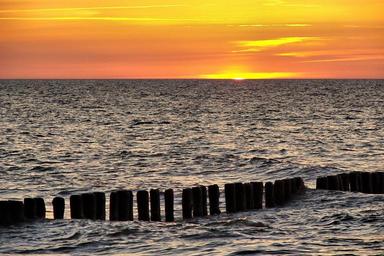 Keywords: baltic sea breakwater sunset wood water red sky black water horizon clean sea sky composition summer nature travel tourism natural europe