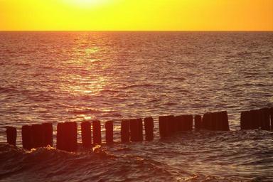Keywords: baltic sea breakwater sunset wood water red sky black water horizon clean sea sky composition summer nature travel tourism natural europe