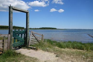 Keywords: baltic sea goal loneliness wide coast sea blue sky old gate dike