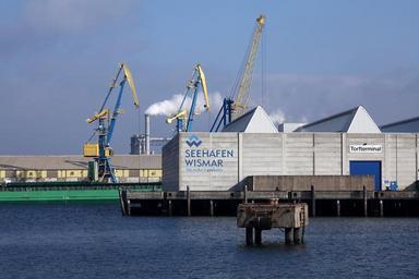 Keywords: baltic sea wismar seaport hanseatic city cranes northern germany blue sky