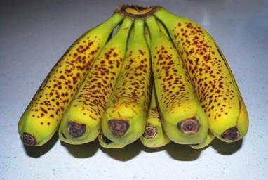 Keywords: bananas yellow fruits brown spots speckles bunch ripe healthy snack nutritious tropical raw sweet delicious desserts