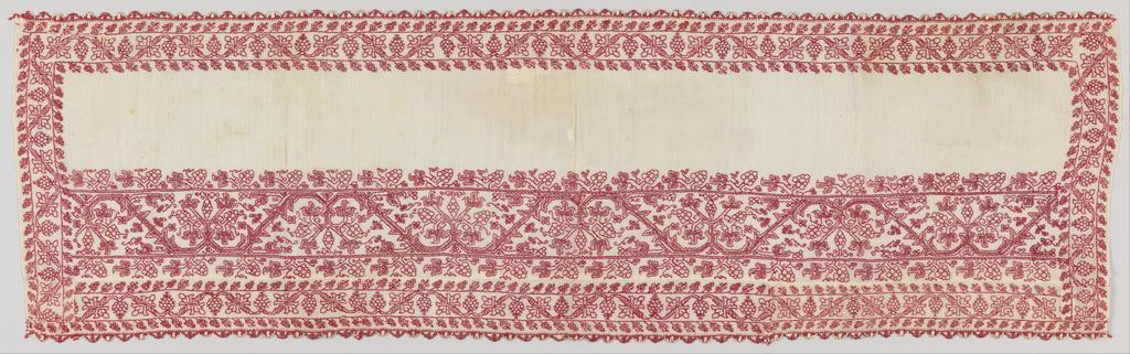 | Keywords: Band - Google Art Project (6814913).jpg 6938587 Unknown /collection/cooper-hewitt-national-design-museum/artwork/band-unknown/6814913/ 159180 author /collection/cooper-hewitt-national-design-museum/ Cooper-Hewitt National Design Museum 3644669 http //www cooperhewitt org/ /collection/cooper-hewitt-national-design-museum/artwork/band-unknown/6814913/ 1601 17th century Medium silk embroidery on linen foundationTechnique embroidered in double running stitch on plain weave with needle lace edging 6814913 False 1700 1978-157-3 http //collection cooperhewitt org/view/objects/asitem/id/159180 Gift of Marco Grassi Band 1600 1710 17th century False 3 2 Object band-unknown Band b H x W 23 5 x 79 cm 9 1/4 x 31 1/8 in Medium silk embroidery on linen foundationTechnique embroidered in double running stitch on plain weave with needle lace edging special url_id JwF4u3G29DNB3A PD-old-100-1923 Google Art Project works by unknown artist Textiles in the Cooper “Hewitt Smithsonian Design Museum Google Art Project works in Cooper-Hewitt Smithsonian Design Museum 17th-century textiles |