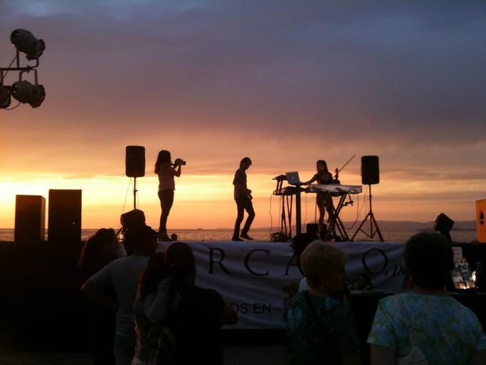 Keywords: band musicians stage beach concert performance live show perform audience nightlife performer musical instruments entertainment song songs playing play guitarist