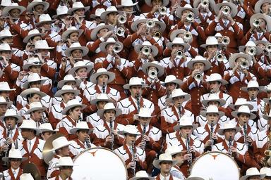 Keywords: band orchestra instrument music playing musician musical trumpet clarinet wind artist performance jazz enthusiasm american football game player pop uniforms play sound college band football fans crowd texas texan spectators