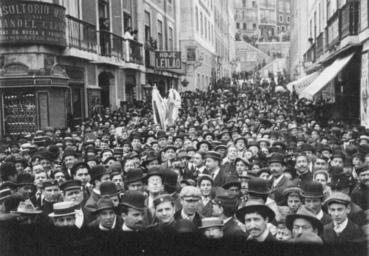 | Keywords: Bando precatório dos estudantes a favor das vítimas do terramoto de Benavente, chegada a Lisboa de estudantes vindos do Porto (1) - 1909.jpg Bando precatório dos estudantes a favor das vítimas do terramoto de Benavente chegada a Lisboa de estudantes vindos do Porto - Calçada do Carmo Artigo na Ilustração Portuguesa 1909 14 de Junho Ref A8885 commonist Institution Arquivo Municipal de Lisboa http //arquivomunicipal cm-lisboa pt/sala/online/ui/searchbasic aspx search _OB 2b_QT MFN__Q 197716_EQ T_D T___ type PCD mode 0 page 0 res 0 Colecção Benoliel Arquivo Municipal de Lisboa 1909-06 Creator Joshua Benoliel PD-old-auto-1923 1932 Calçada do Carmo Photos of Lisbon uploaded by Darwinius Students charity fundraising for the victims of the 1909 Benavente earthquake Ilustração Portuguesa Images from the Arquivo Municipal de Lisboa Photographs by Joshua Benoliel |