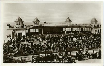 | Keywords: Bandstand Herne Bay Kent 1924 012.jpg The Central Bandstand Herne Bay Kent England The title The new bandstand suggests that the photograph was taken in 1924 when it was built ;Points of interest The photographer probably used film instead of a large-format glass negative The picture is in focus but there is no fine detail The notice over the proscenium arch above the stage says Buffs Depot Band The rest of the notice is almost illegible but it appears that there was an afternoon concert at 3pm and possibly a later one The deckchairs were handed out for a small fee and deposit by young deckchair boys They are not evident in this photo but the pile of folded deckchairs can be seen on the left They were made of wood and canvas and provided summer holiday work for schoolchildren and a little winter work for local people in repairs Scan of postcard 1924 anon out of copyright See also File Bandstand 1924 009 jpg PD-old-70 Postcards of Kent Herne Bay Bandstand The Buffs Royal East Kent Regiment |