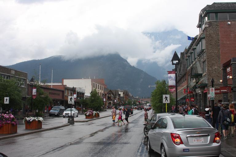 MAKE A MEME View Large Image banff town canada street destination stone park national canadian flowers travel world . intersection european traffic avenue summer outside building bike balcony season unesco shopping heritage chalet architecture