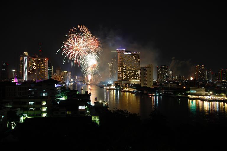 Keywords: bangkok thailand asia skyscraper building city architecture skyline illuminated metropolis night fireworks light