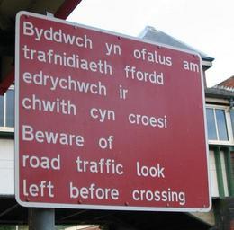 | Keywords: Bangor bilingual station crossing sign.jpg Bangor station bilingual crossing sign Own 2007-12-01 Man vyi Own work all rights released Public domain Bilingual road signs in Wales Bangor Gwynedd railway station Pedestrian crossings in the United Kingdom |