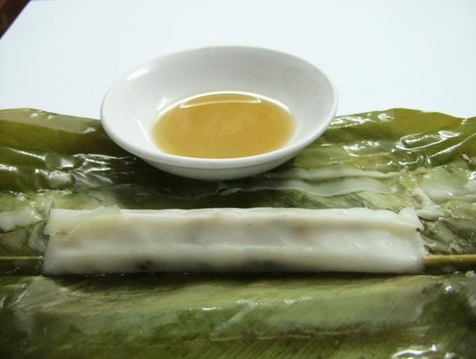 | Keywords: Banh te My Duc 2.png Bánh tẻ sau khi bóc vỏ loại làm ở Mỹ Đức Hà Tây và đĩa nước mắm chấm An unwrapped bánh tẻ Mỹ Đức Hà Tây and a small dish of nước mắm fish sauce Own 2007-10-20 Binh Giang Binh Giang Bánh tẻ Nước mắm Pictures by Binh Giang |
