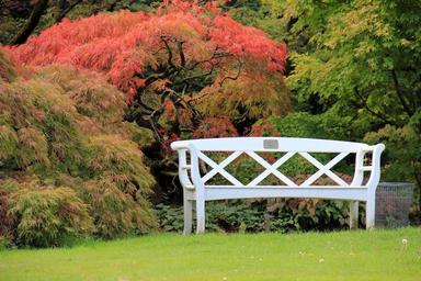 Keywords: bank autumn park leaves trees tree meadow rush green red bielefeld