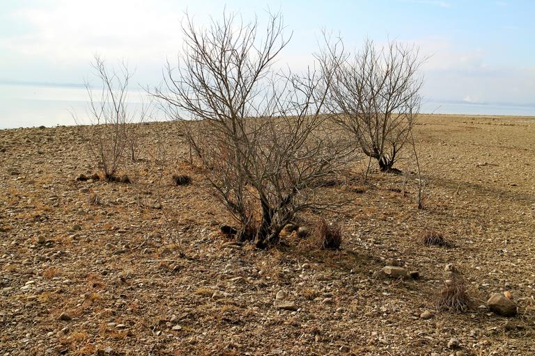 Keywords: bank coast beach tree bush dry arid alone aesthetic lonely karg nature drought chiemsee
