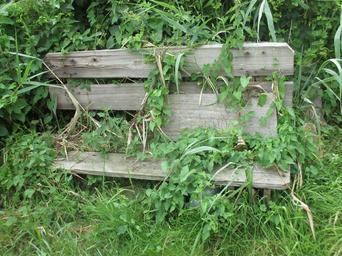 Keywords: bank entwine green climbing plants overgrown make the most of wooden bench park wild idyllic romantic