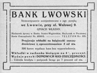 | Keywords: Bank lwowski - advertisement (01).jpg uk Реклама банку Bank lwowski у львівському путівнику 1913 ік http //www sbc org pl/dlibra/docmetadata id 42 Księga adresowa Król Stoł Miasta Lwowa Rocznik 17 1913 dodatek s 63 author 1913 Advertisements in Lviv 1913 advertisements Banks in Lviv PD-old |