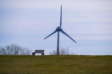 Keywords: bank pinwheel dike wind energy meadow grass north sea relaxation chill out rest silent wind harmony meditation current power generation