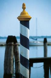 Keywords: bank promenade port lake sea pier piles dolphin holzdalben blue white striped yellow scan