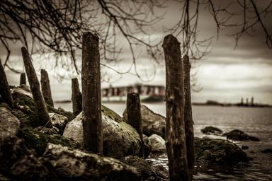 Keywords: bank river container ship water riverside waters mood sepia nature aesthetic
