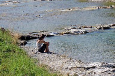 Keywords: bank woman girl river human idyll harmony rest sit wait thoughtful lonely individually thinking childhood