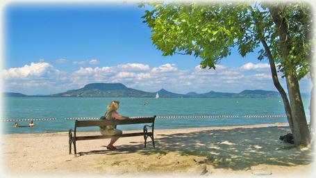 Keywords: bank woman person hungary lake balaton balaton water beach rest sit outlook view