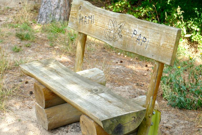 Keywords: bank wood forest nature rest unique seat sit benches old inscription romantic rustic