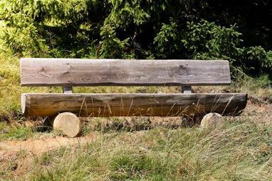 Keywords: bank wooden bench nature rest trail click seat weathered wood bench resting place sit out