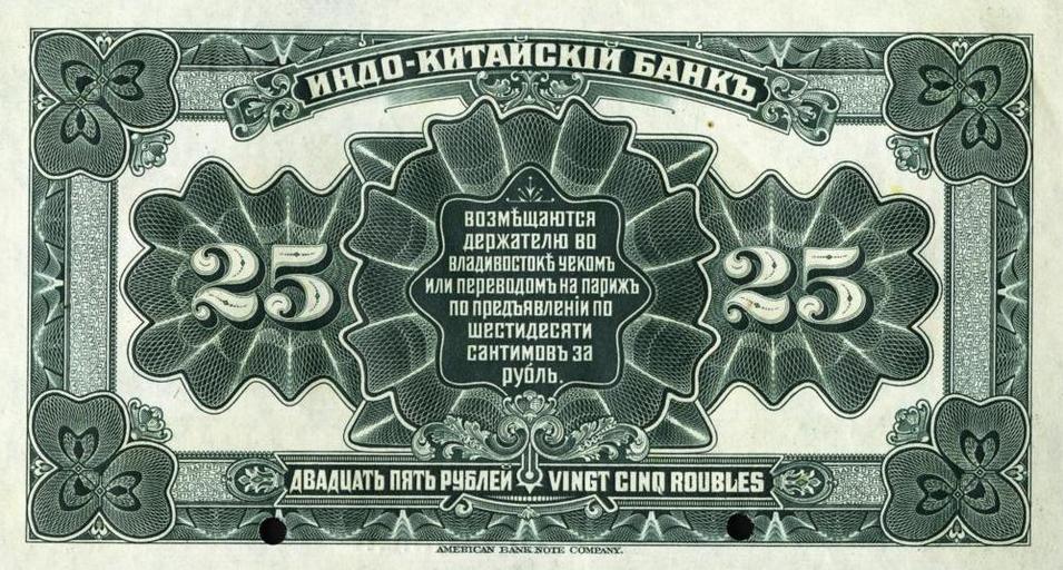Keywords: Banque d'Indo-Chine 25 roubles 1919 rev.jpg en Banque d'Indo-Chine 25 roubles 1919 rev jpg own Dvergar Money of Civil war of Russia Banknotes with a face value of 25