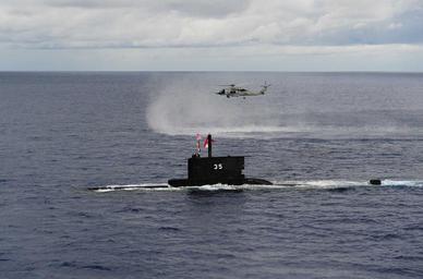 | Keywords: BAP Islay (SS 35) with SH-60F of HS-11 in September 2014.JPG en A U S Navy Sikorsky SH-60F Seahawk helicopter assigned to Anti-Submarine Squadron HS 11 Dragonslayers hovers over the Peruvian submarine BAP Islay SS 35 during a maneuvering exercise Islay participated in the exercise with the aircraft carrier USS Theodore Roosevelt CVN-71 the guided-missile destroyers USS Winston Churchill DDG-81 USS Forrest Sherman DDG-98 USS Farragut DDG-99 and the guided-missile cruiser USS Normandy CG-60 2014-09-23 140923-N-KA273-197 Navy http //www navy mil/view_image asp id 184876 Photo by Mass Communication Specialist 2nd Class Katie Lash PD-USGov-Military-Navy BAP Islay SS-35 SH-60F Oceanhawk Helicopter Anti-Submarine Squadron 11 United States Navy |