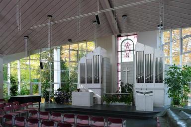 Keywords: Baptistenkirche (Wannsee) Altarbereich innen.JPG de Blick in den Kirchsaal in Richtung Altar own Bodo Kubrak 2013-10-24 Kirche am Immanuel-Krankenhaus Pipe organs in Berlin Kirche Immanuelkrankenhaus Cc-zero