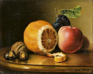| Keywords: Barabás H. Still Life with Orange 1856.jpg Artwork Creator Henriette Barabás 1856 Oil on canvas Size cm 35 24 Private collection object history exhibition history credit line bottom right Henriette Barabás 856 accession number http //www nagyhazi hu/english/index php nagyhazi hu http //www nagyhazi hu/tetelek_kereses php msz 154 tid 37271 tp 20 page Info http //www nagyhazi hu/kepek/154/368864 jpg Pic PD-old-100 Paintings by Henriette Barabás 1856 paintings 1850s still-life paintings Paintings of oranges |