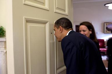 | Keywords: Barack Obama looking through the Oval Office door peephole.jpg Oval Office door peephole as his personal secretary Katie Johnson watches 3/12/09 http //www flickr com/photos/whitehouse/3484835936/ The Official White House Photostream White House Pete Souza / Maison Blanche Pete Souza 2009-03-12 PD-USGov DEFAULTSORT 20090312 Barack Obama in 2009 Barack Obama in the Oval Office Katie Johnson Door viewers Photographs by Pete Souza White doors White House presidential secretary office Peepholes |
