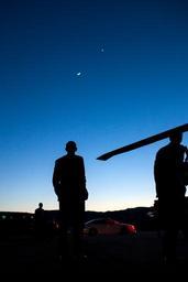 | Keywords: Barack Obama looks at the moon and Venus.jpg 40 037949 -105 231033 region US-CO_scale 2500 Barack Obama stops to view the moon and Venus before boarding the Marine One helicopter at Boulder Municipal Airport in Boulder Colorado half an hour after addressing students at the University of Colorado at Boulder on 24 April 2012 The President was facing west towards the Front Range foothills of the Rocky Mountains background at 20 18 local time while the Lunar phase waxing crescent moon was 30° above the western horizon The moon was 400 817 kilometres distant 3 4 days old 11 98 illuminated and moonset followed at 23 07 Venus was at a distance of 0 488150 astronomical unit s was 31 91 illuminated and set at 23 33 local time 2012-04-24 20 18 20 Mountain Daylight Time http //www flickr com/photos/whitehouse/7161176956 White House Flickr account Pete Souza PD-USGov Uploaded with UploadWizard Barack Obama in 2012 Venus planet People with the Moon Moonset Blue sky with the Moon in the United States Photographs of the waxing crescent moon Barack Obama and Marine One Boulder Colorado Photographs by Pete Souza Taken with Canon EOS 5D Mark II Uploaded by O'Dea |