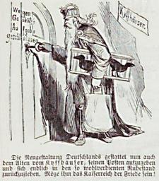 | Keywords: Barbarossa (Kladderadatsch, 1871).jpg Barbarossa In Kladderadatsch Humoristisch-satyrisches Wochenblatt Berlin 24 1871 Seite 281 http //digi ub uni-heidelberg de/diglit/kla1871/0281 UB Heidelberg 1871 Author 1871 cartoons Kladderadatsch Frederick I in 19th century art PD-old |