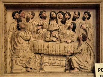 | Keywords: Barbastro Catedral 10 Retablo San Ramón Obispo.JPG Detail of the The last Supper on Retablo de San Ramón Obispo -- Catedral de Santa María de la Asunción Barbastro Huesca Spain Own Mattana 2010-11-22 Images by Mattana-Barbastro Spain Altarpiece of San Ramón Obispo Barbastro Cathedral Reliefs of the Last Supper in Spain Church reliefs in the province of Huesca | ||||