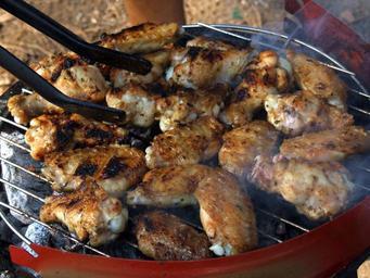 Keywords: barbecue coal embers tomato pepper chicken