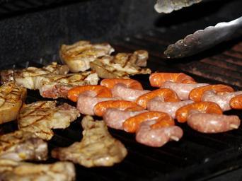 Keywords: barbecue grill barbecue tongs sausage steak meat bbq stainless grilled pork chops