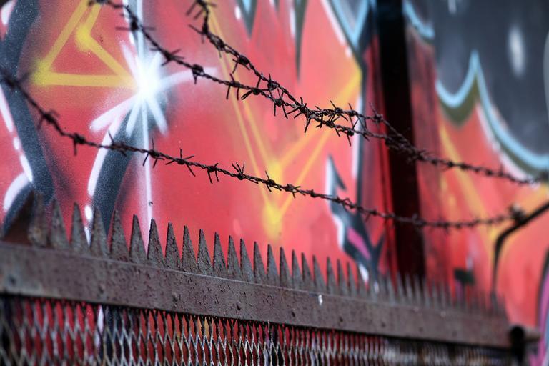 Keywords: barbed wire border fence refugee ddr federal republic of germany graffiti metal barrier risk