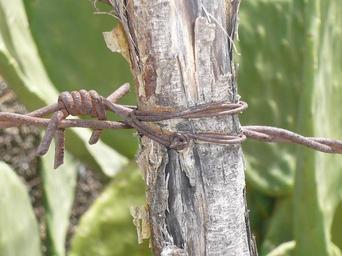 Keywords: barbed wire fence limit stop caught prison risk pile border