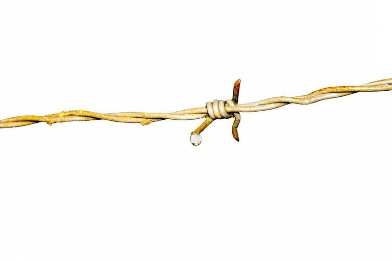 | Keywords: barbed wire iron skewer rust wire fence security protection sharp steel barrier border barb guard boundary jail barbwire secure safety defense pattern line trespass spike isolation prevent forbidden razor twisted system warning dangerous enclosure protect deterrent separation construction restriction barricade block caution barbed rusty danger |