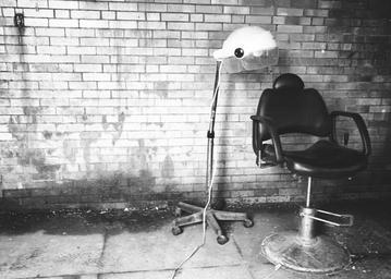 Keywords: barber chair bricks wall concrete black and white