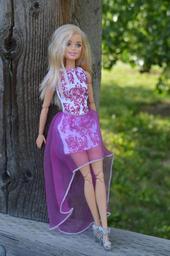 Keywords: barbie doll toy posing dress purple caucasian fashion glamour blonde female sexy portrait woman model trendy attractive