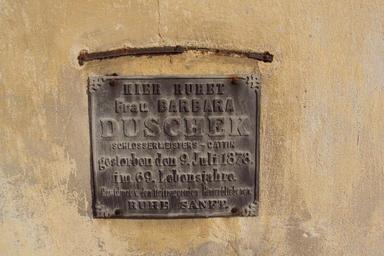 | Keywords: Barbora Duschek.jpg cs Deska zazděna ve vnější zdi kostela svaté Barbory u Zahrádek na Českolipsku de Gedenktafel für Barbara Duschek an der Außenwand der Kirche St Barbara in Zahrádek Česká Lípa own Zákupák 2011-03-13 50 37 31 07 N 14 31 45 67 E Church of Saint Barbara in Zahrádky Česká Lípa District Plaques in Česká Lípa District |