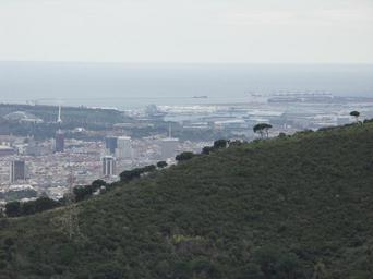 Keywords: barcelona from horizon see landcape forest park trees city port landscape